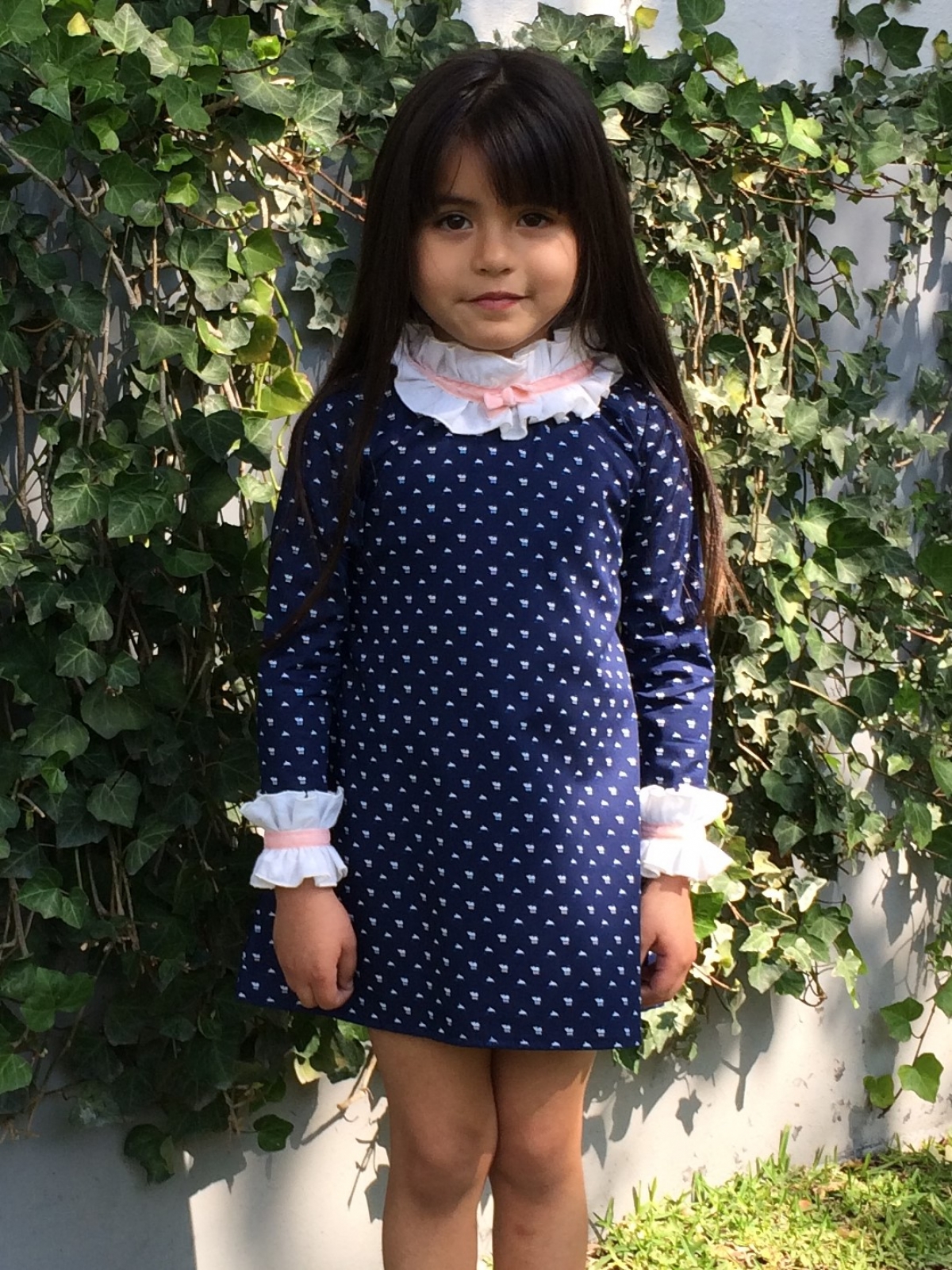 VESTIDO DELFINES CUELLO Y PUÑOS BLANCOS LINEA A