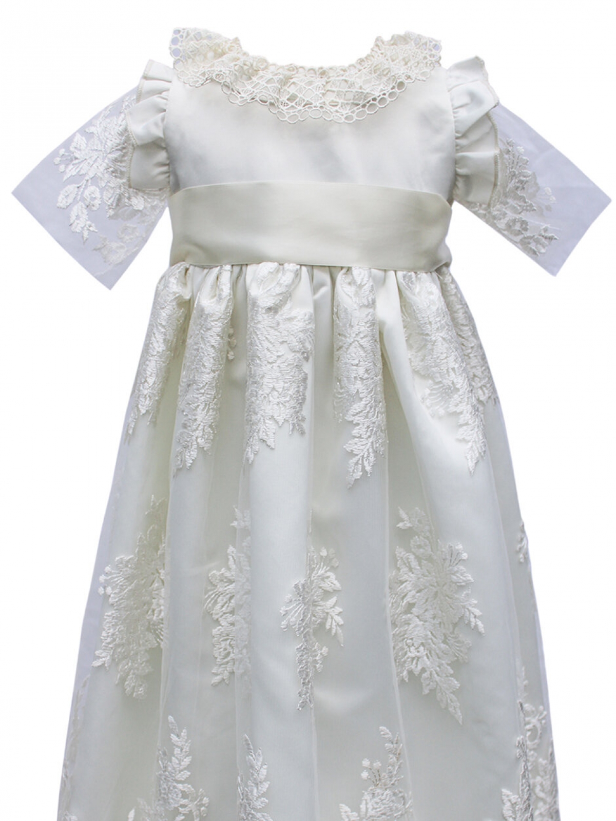 Ropón bordado iceberg 1 pieza guipur cuello y mangas