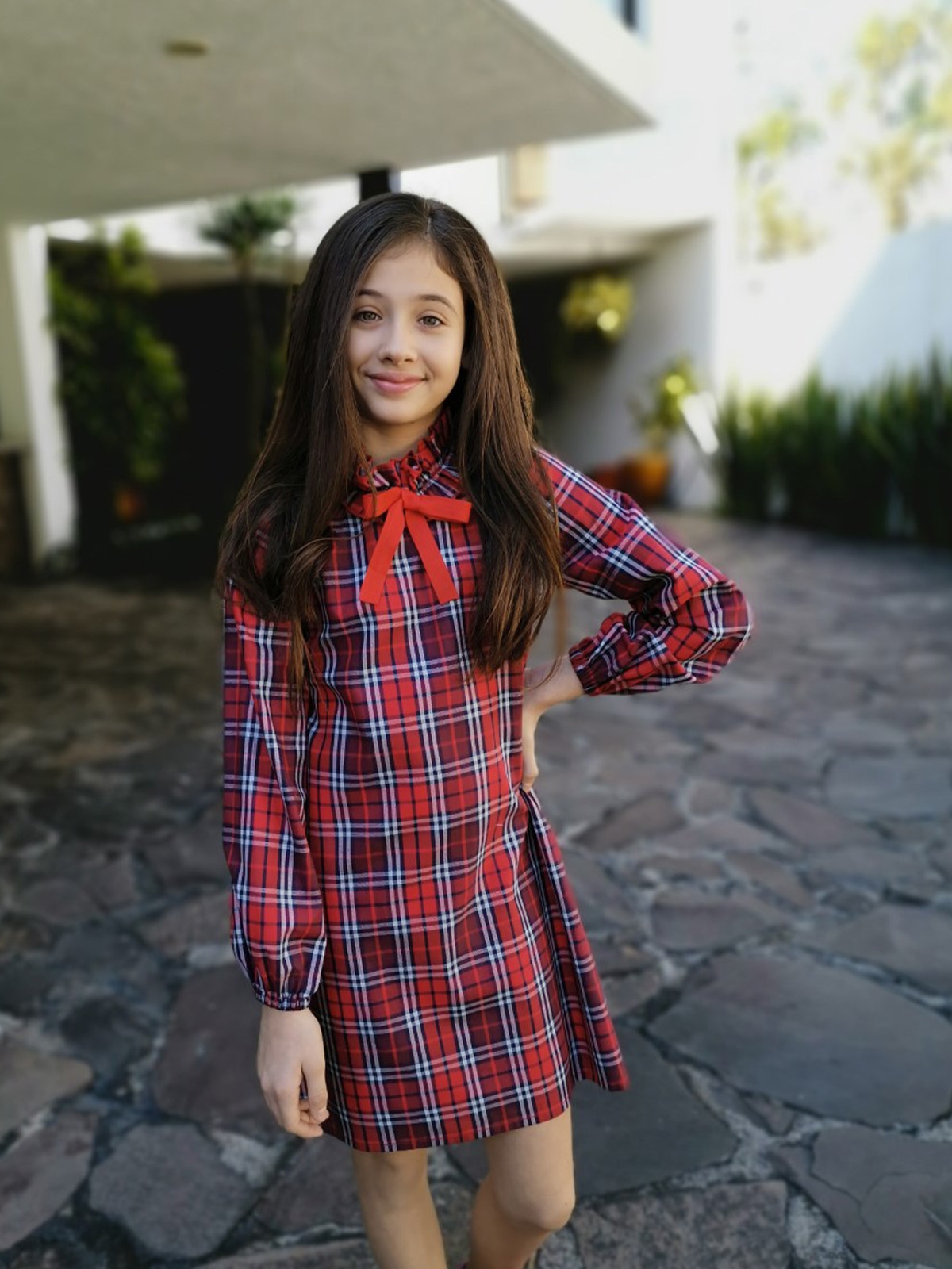 VESTIDO CUADROS 3 ESCAROLAS PECHO
