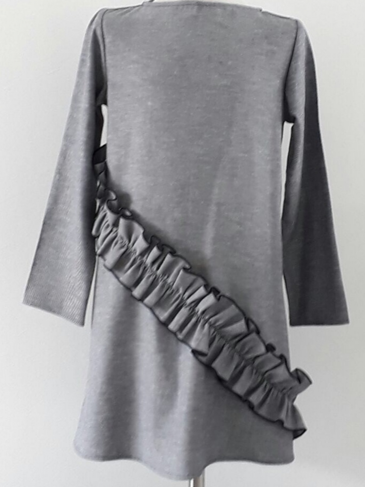 Vestido Mezclilla Gris Rufle Inclinado